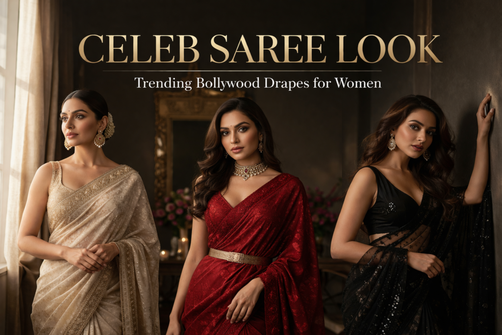 Discover trending celeb saree look styles inspired by Bollywood, with styling tips and modern celebrity sarees for every occasion.